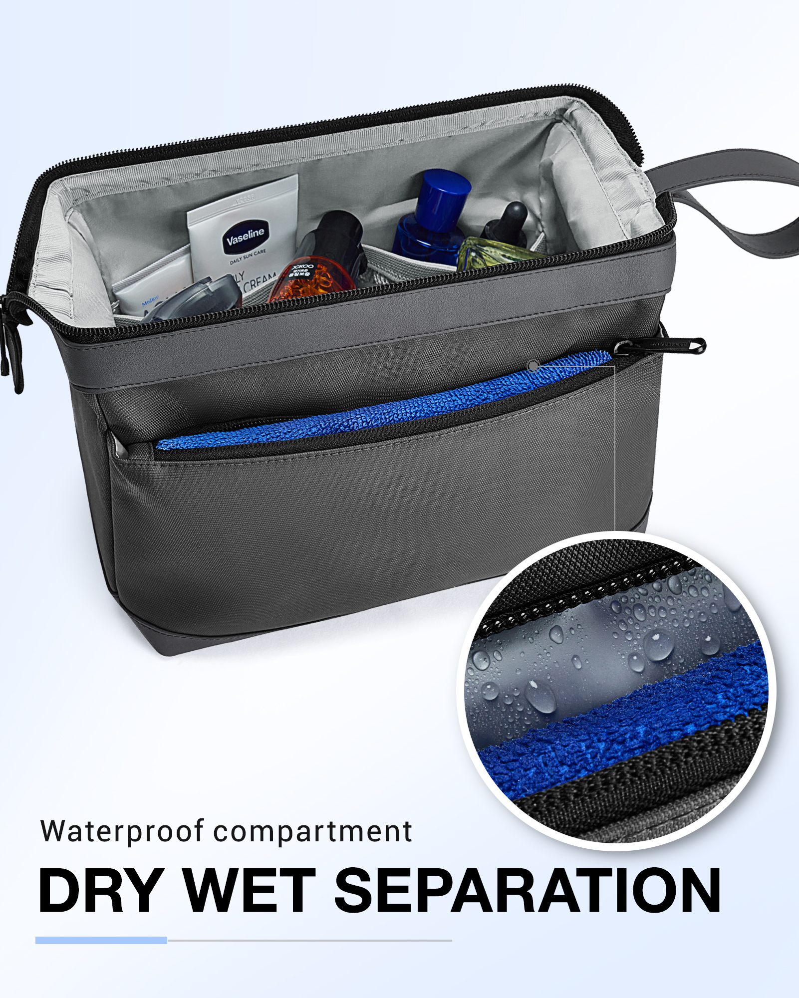 • Versatile Features- Dopp kit is equipped with a sturdy leather handle, inner mesh pockets, water-resistant polyester material to meet different storage needs.