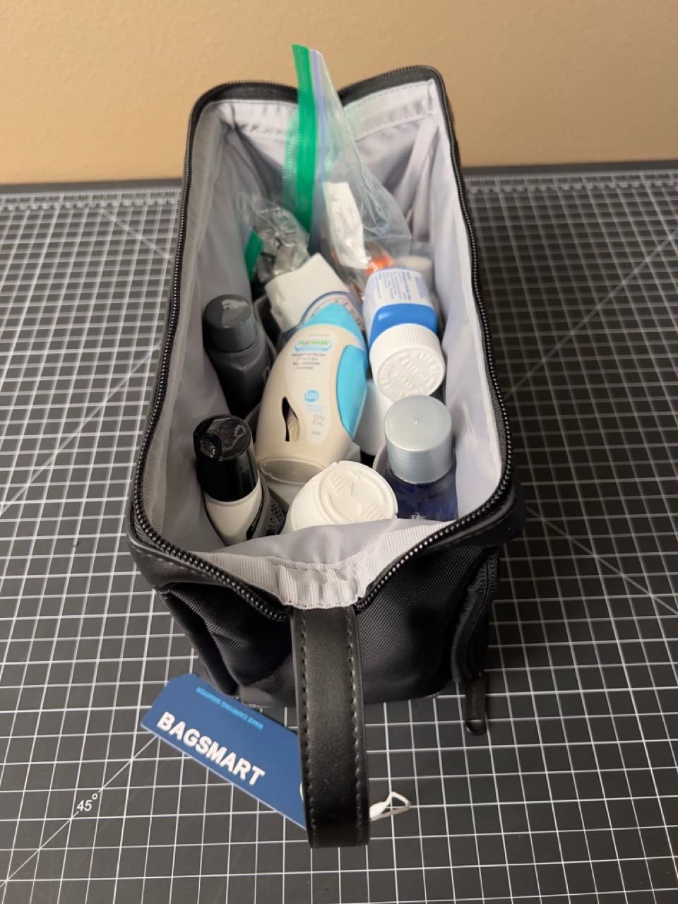 • Multi-purpose Toiletry Organizer- This toiletry bags for traveling will meet your needs, for all trips, long or short and you can drop all skincare products, like larger bottles, sewing kits, perfume, and more.