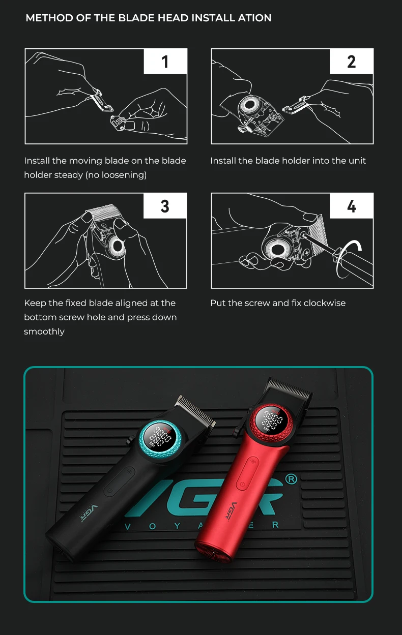 Experience precision grooming with the VGR Hair Clipper, featuring a powerful 9000 RPM motor, adjustable 24mm blades, and a long-lasting 300-minute battery life for universal hair types.