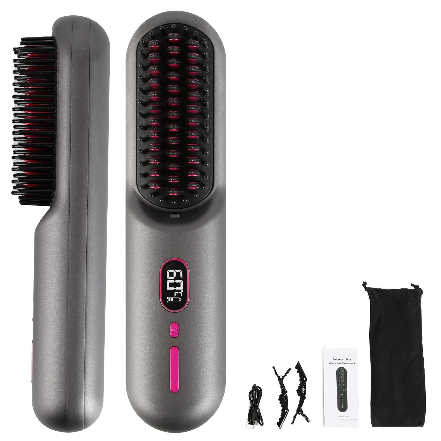 *20 Million Negative Ions Care*:The hair straightener brush releases 20 million negative ions evenly distributed along each bristle,which not only gently soothes hair static and frizz,but also form a water film on the hair to reduce moisture loss after styling. Glide through hair effortlessly,preventing damage and leaving it smooth and polished.