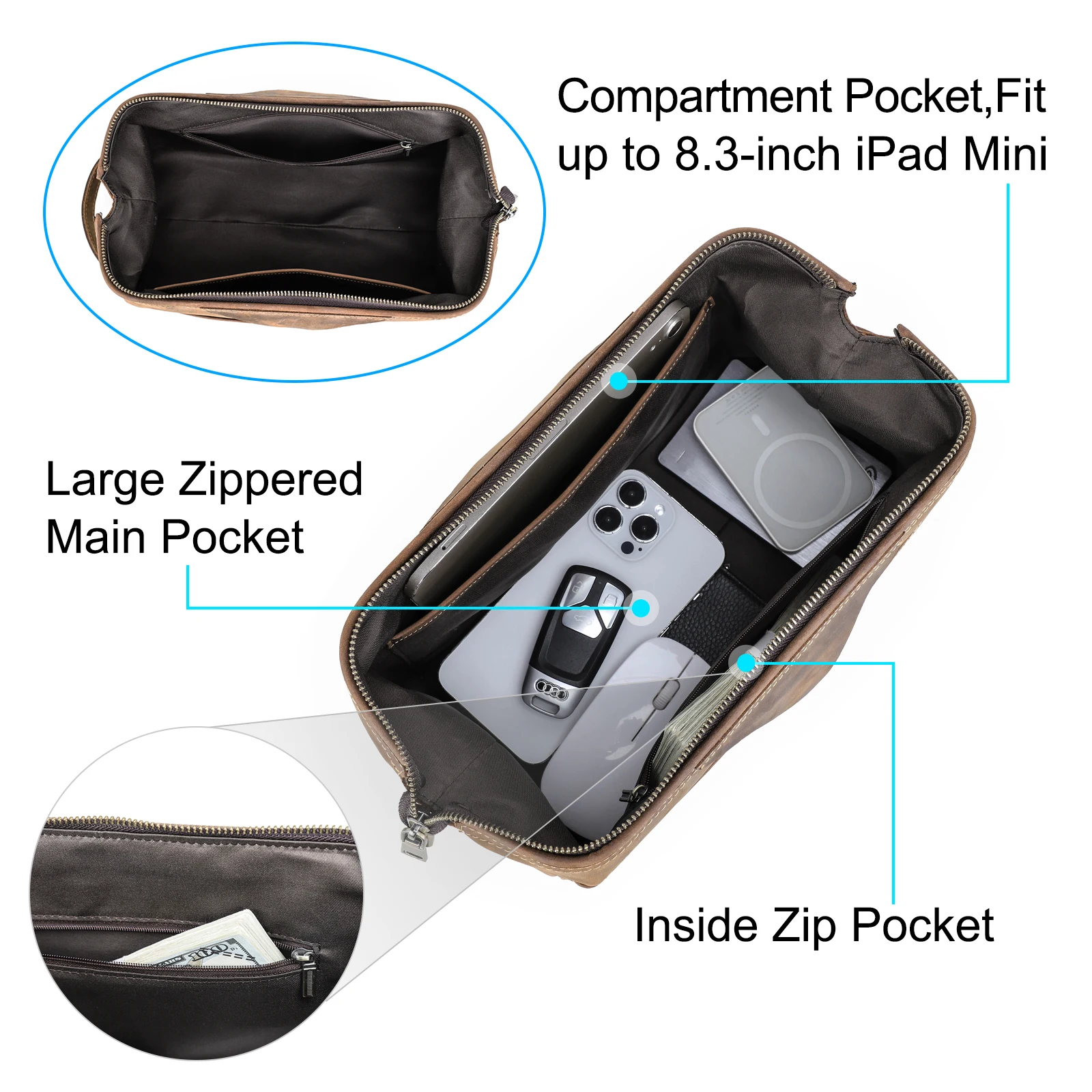 Genuine Leather Toiletry Bag Men Cosmetic Bag Travel Man Woman Wash Bag Storage Bags Handbag For Make Up Dopp Kit Male