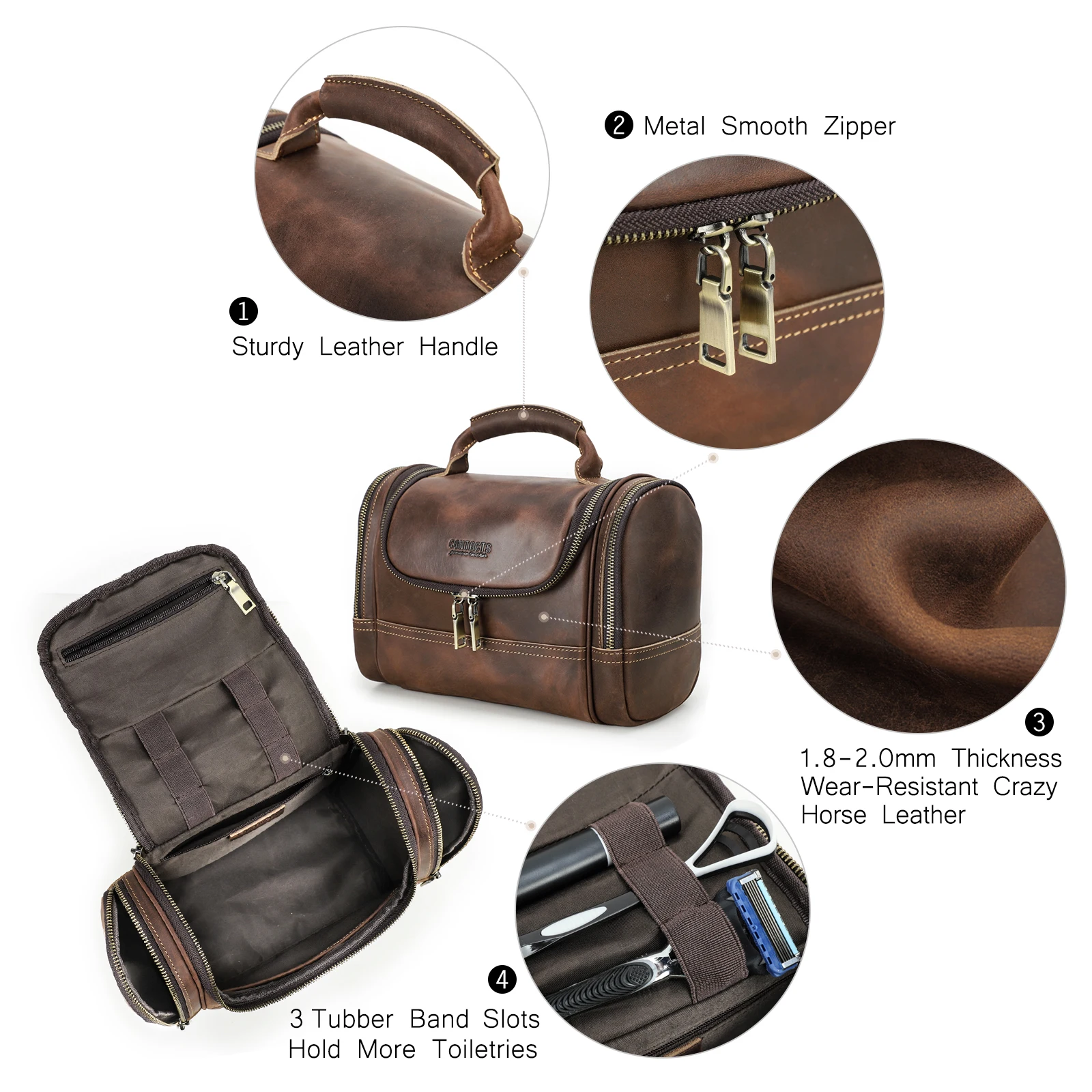Men Genuine Leather Travel Business Toiletry Shaving Bag Women Retro Cosmetic Washing Shower Organizer Handbag Large Capacity
