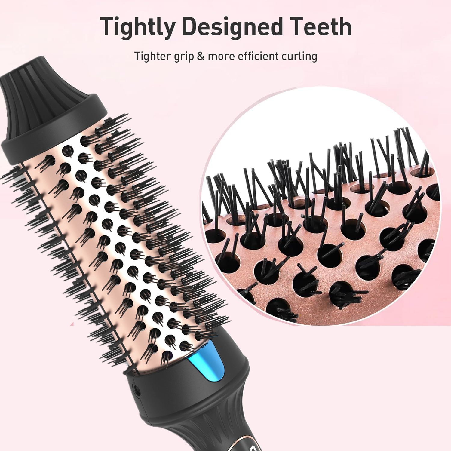 1.New Upgrade 38mm Thermal Brush:Featuring a 38mm ceramic barrel, this brush ensures even heat distribution for medium to loose curls, adding volume and bounce to your locks. With rapid 30-second heating powered by advanced double PTC heating technology, achieving smooth and long-lasting curls has never been quicker.